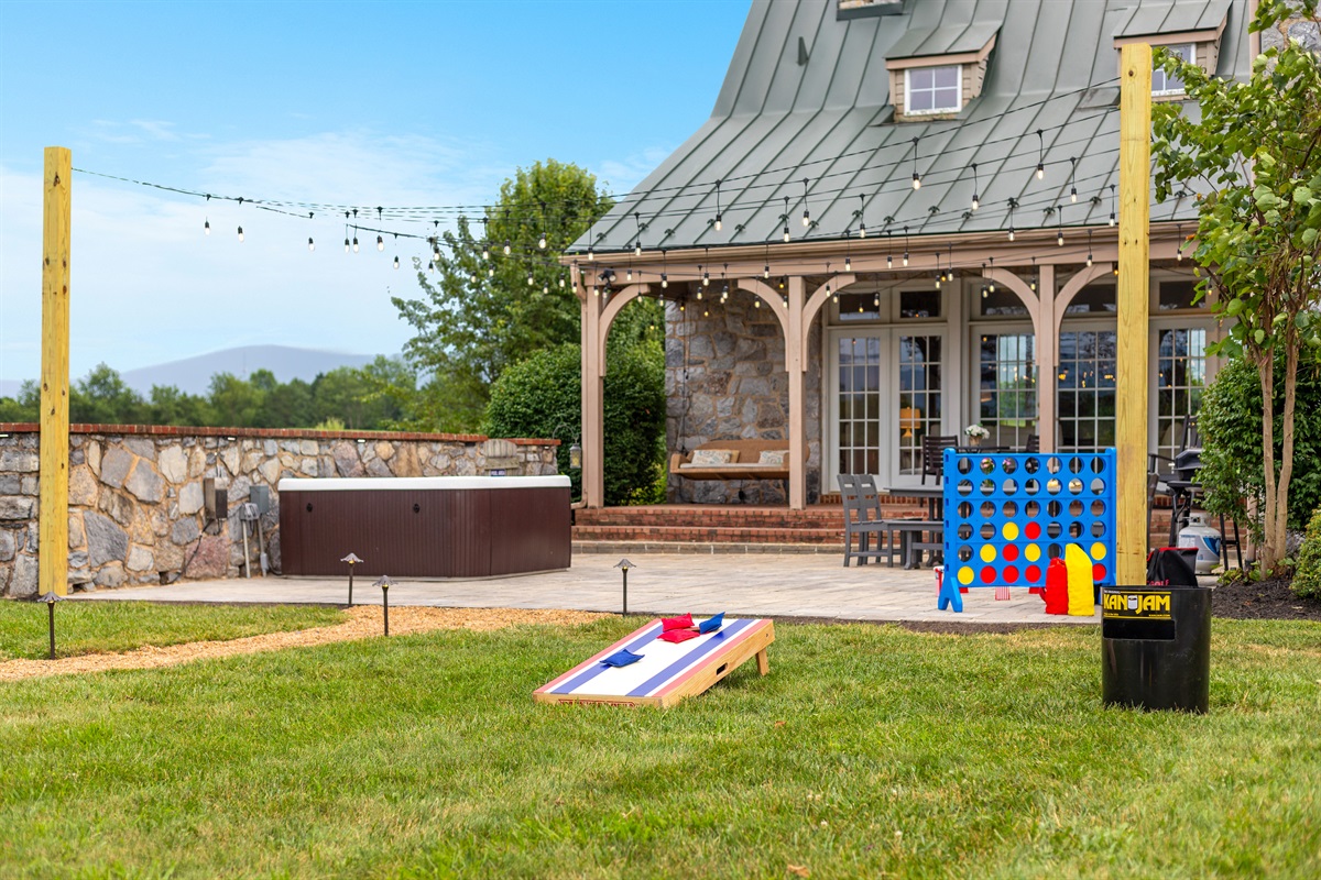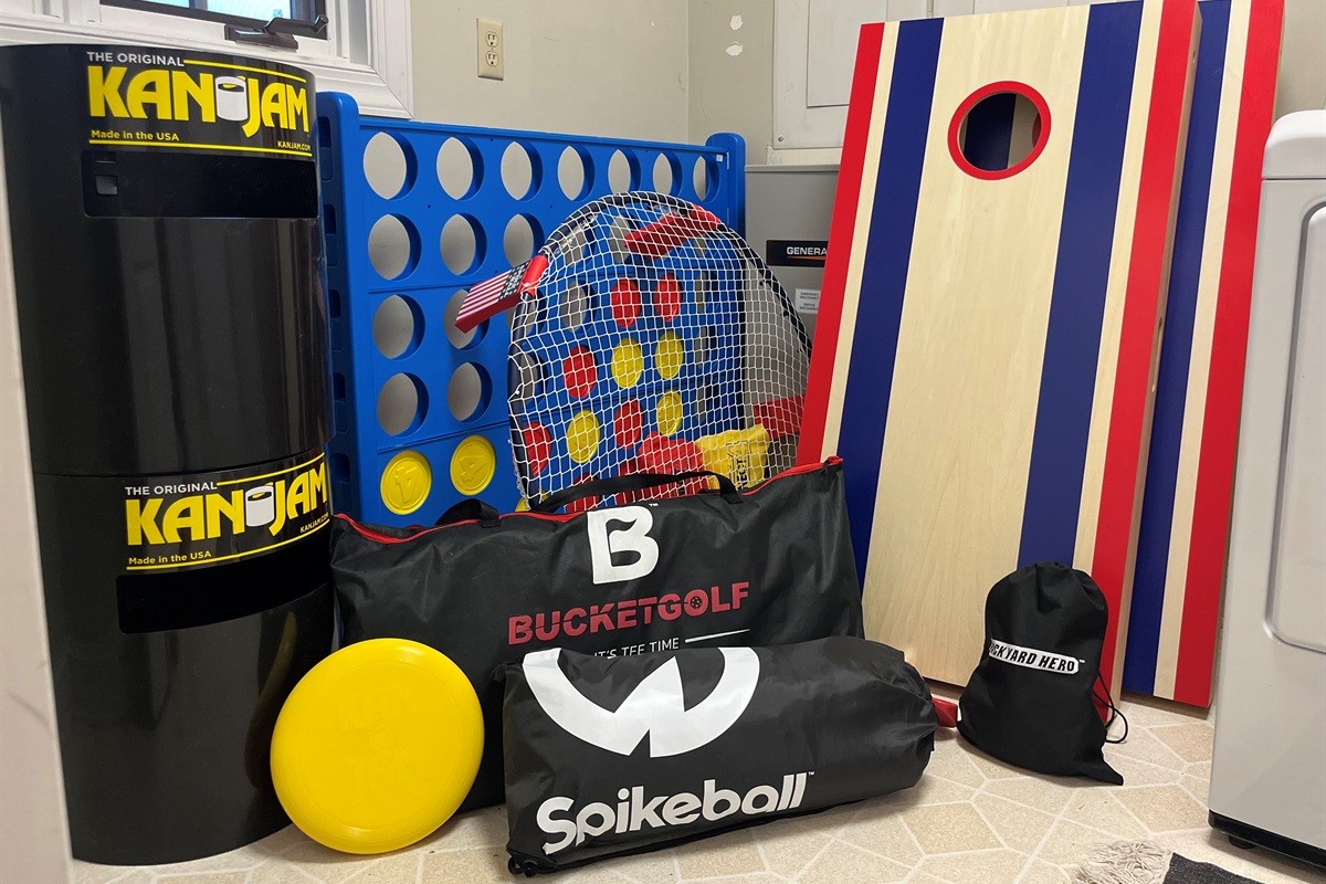 ✔ Lawn Games & Outdoor Ping Pong – Includes Cornhole, Can Jam, Giant Connect 4, Bucket Golf, and a full-size outdoor ping pong table