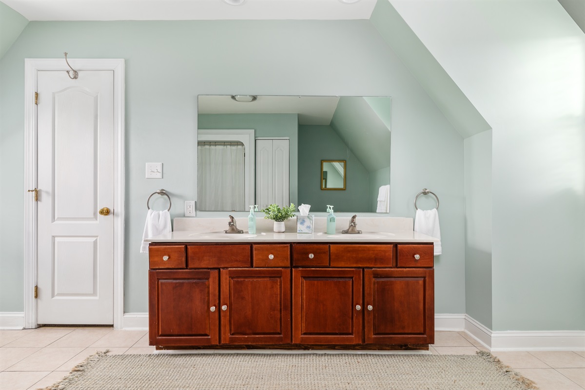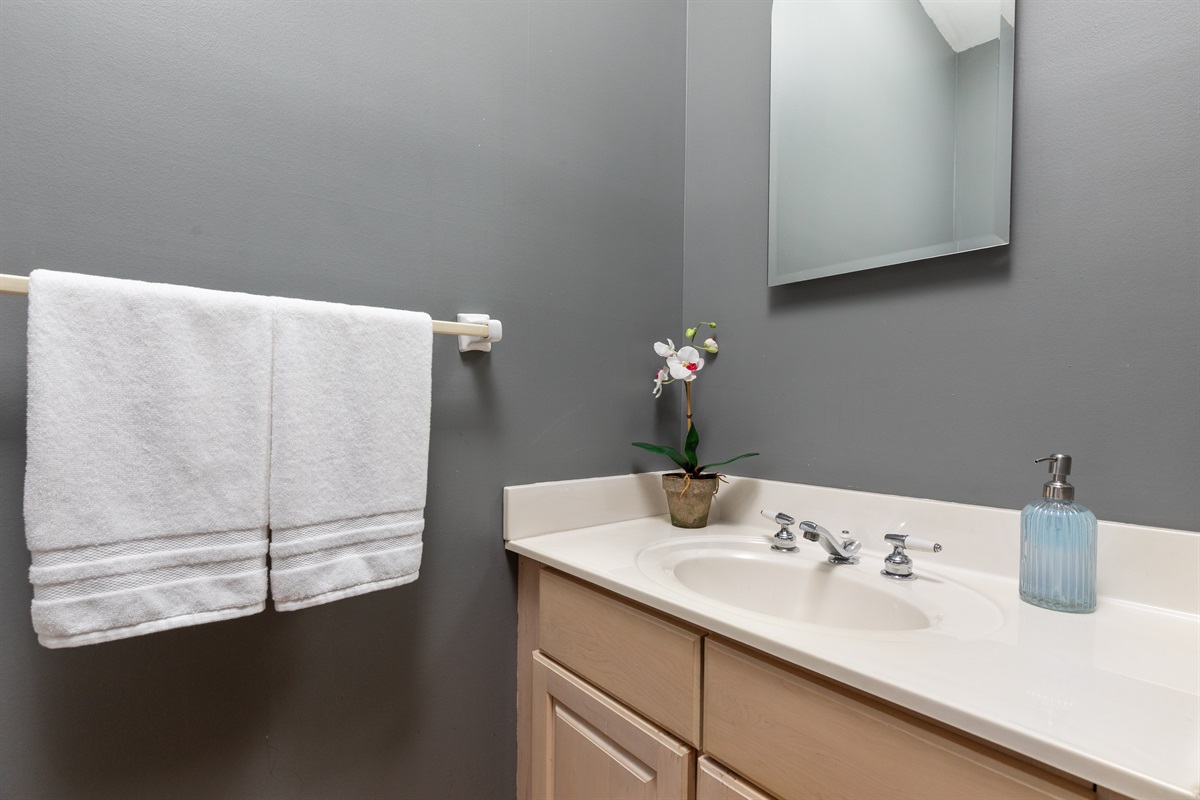 • Main Level – Full bathroom + additional half bath