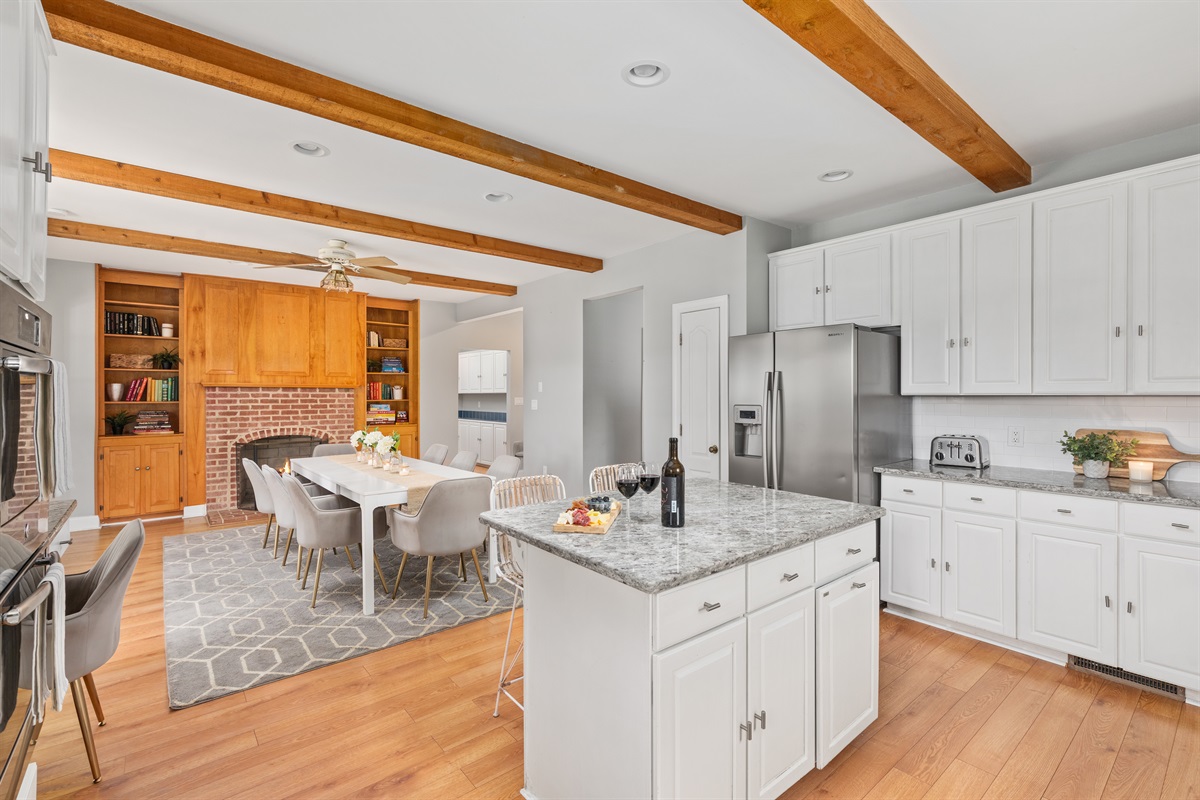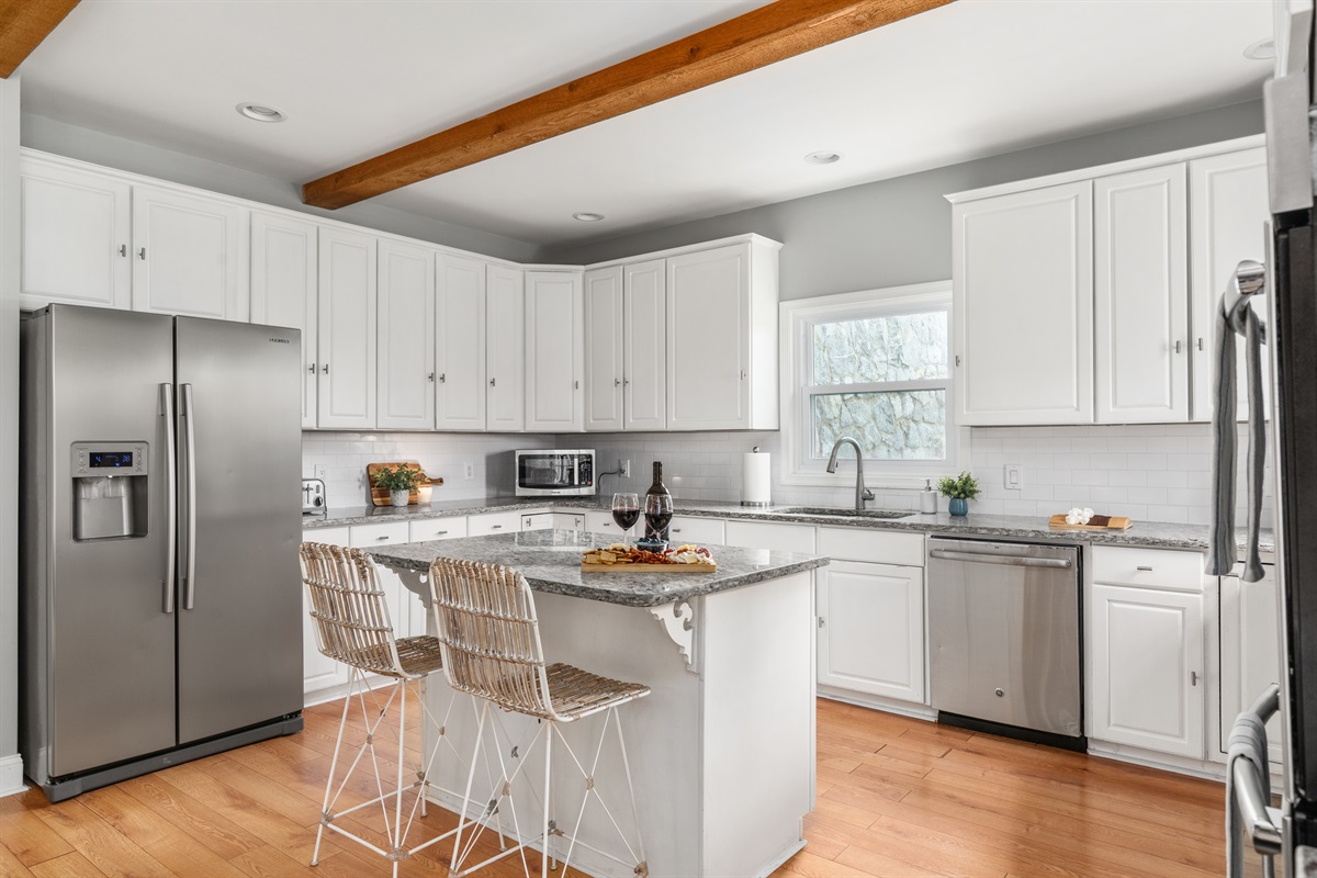 ✔ Modern Chef’s Kitchen – Fully stocked with upgraded appliances and island seating