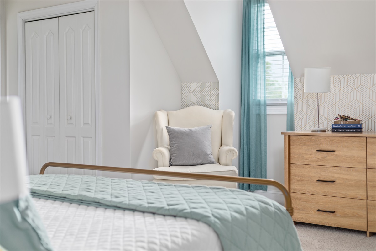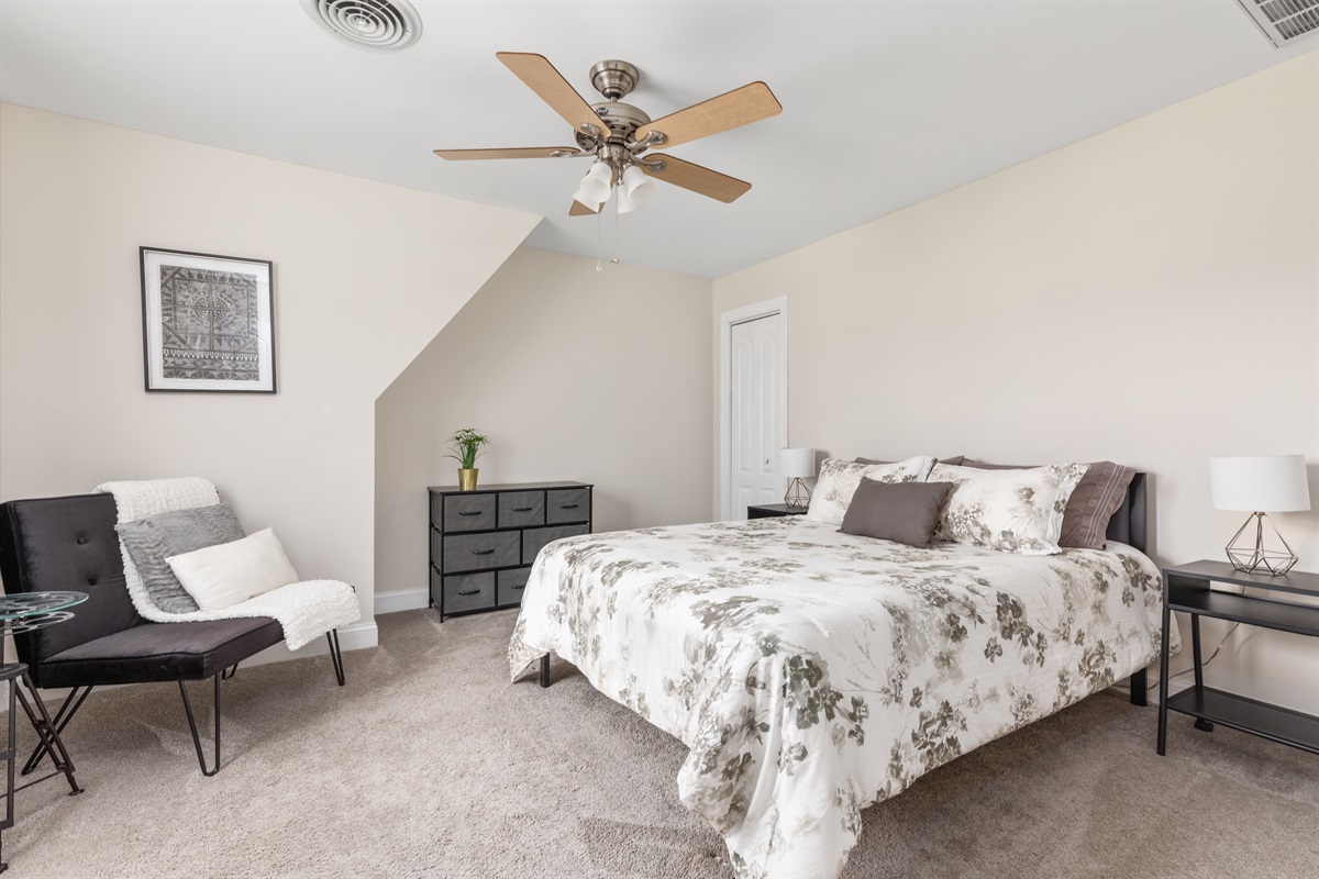 • Bedroom 3 (Upper Level) – Queen bed with easy access to the shared upper-level full bathroom