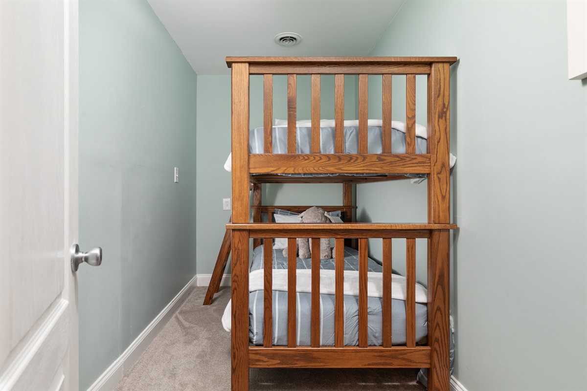 • Bedroom 5 (Upper Level) – Twin bunk beds great for kids or casual sleeping arrangements