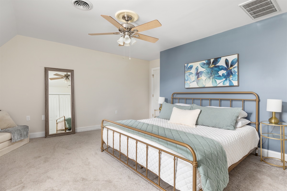 • Bedroom 1 (Main Level) – King bed with convenient access to adjacent half bath and same level full bathroom